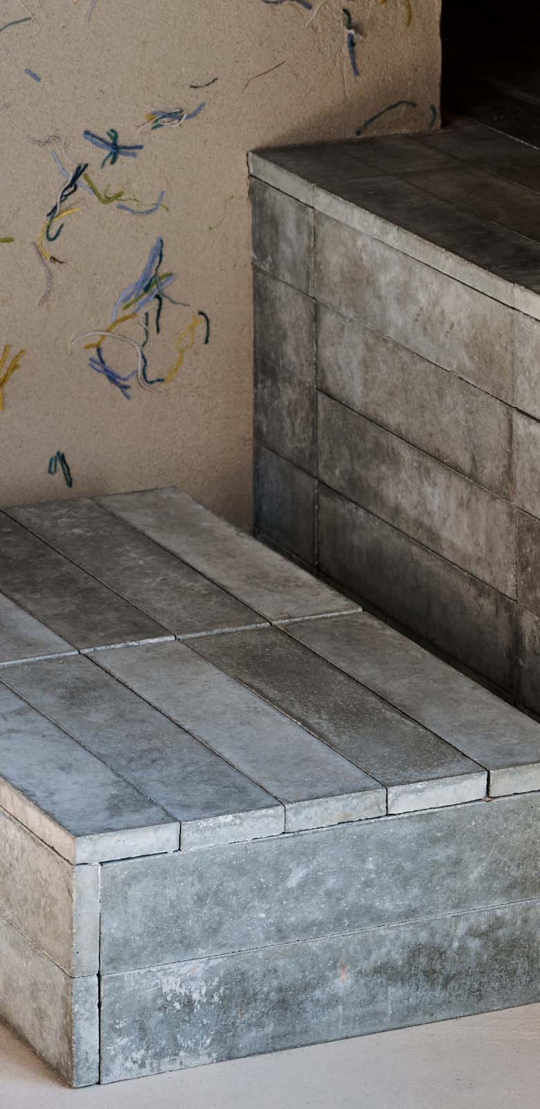 使われているコンクリートの強度は、一般的なコンクリート(24N/㎟)を超え、高強度コンクリート(36N/㎟)をもはるかに上回る特殊配合コンクリート(60N/㎟)です。そのため、強度を保ちつつ15mmという薄さのタイルも実現しています。