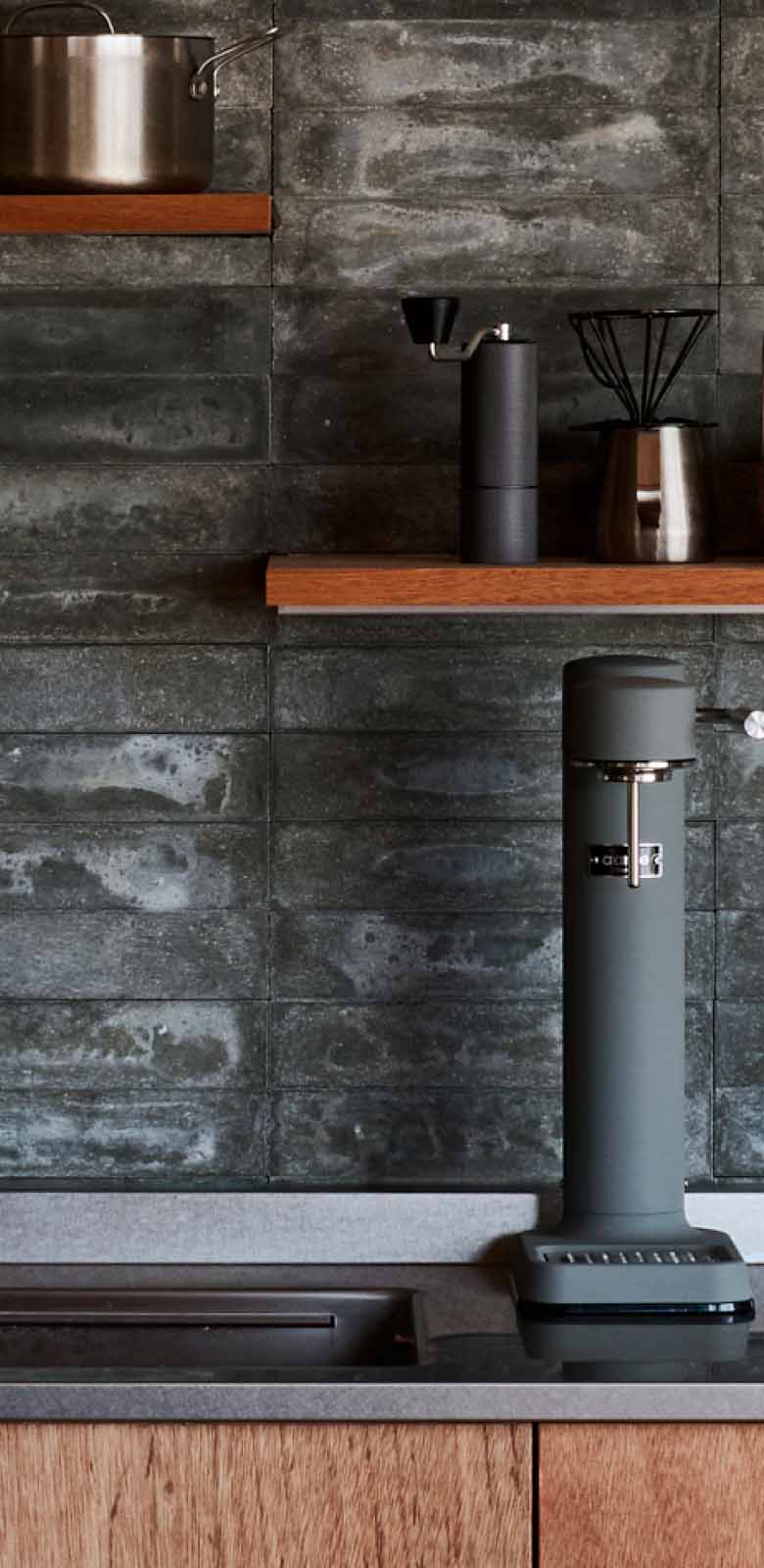 密実で滑らかな表面テクスチャーを持ち、製造過程で発生する気泡や、角の欠けなどの素材のゆらぎはあえてそのまま残しています。